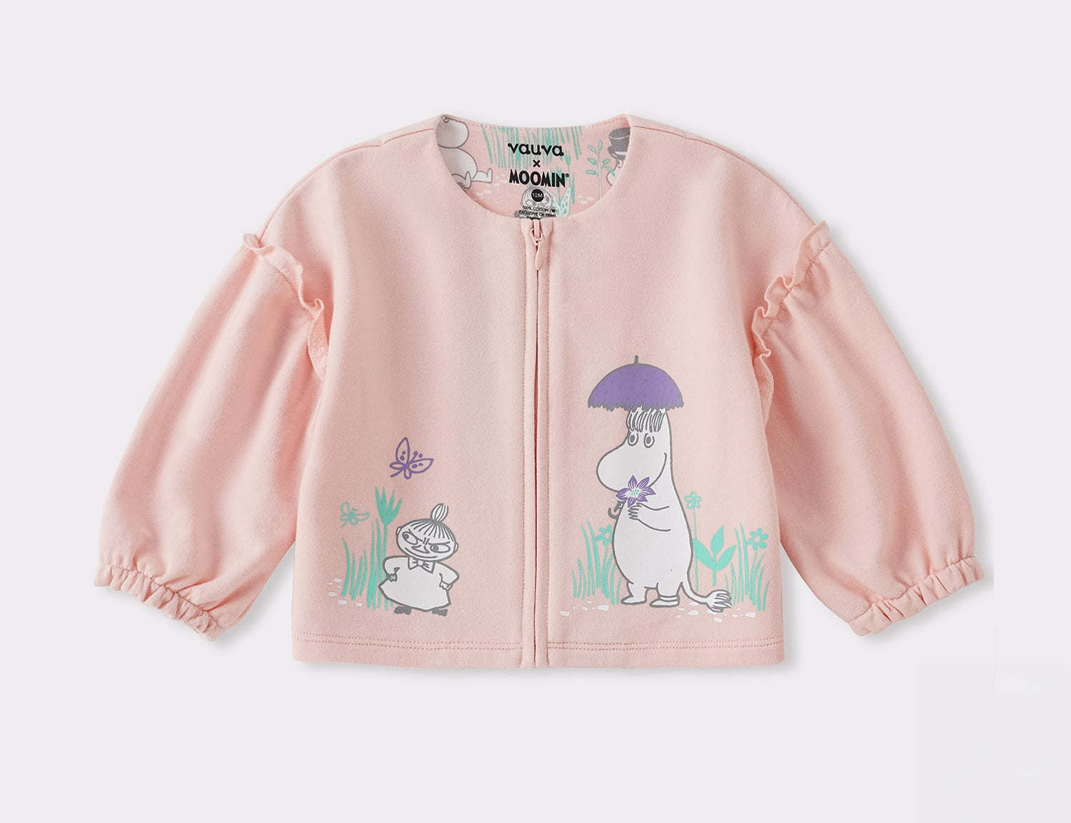 Baby Balloon Sleeve Print Zipped Jacket