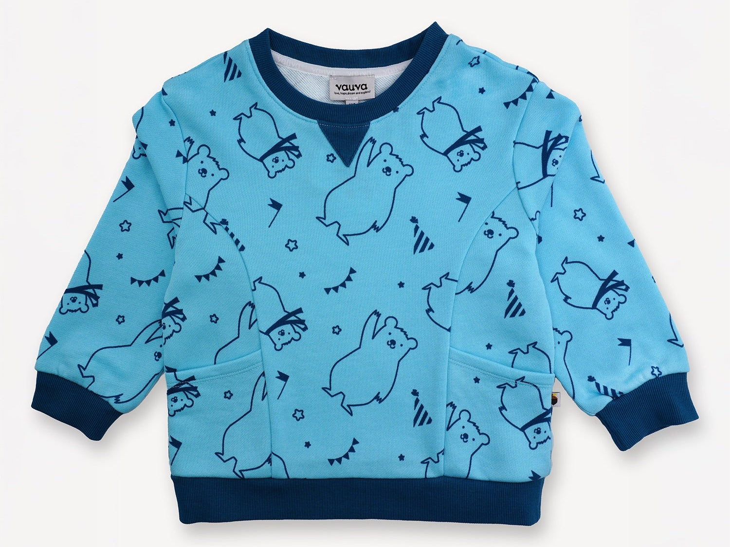 Keep your little one warm and wonderfully stylish with the Bear-Print Sweatshirt — a cozy essential made for everyday adventures. Made from 100% organic cotton, this sweatshirt is lightweight, breathable, and gentle on delicate skin. The all-over bear print adds a playful, charming touch, while thoughtful details like ribbed cuffs, hems, and a classic round neck ensure a snug, comfy fit. Front pockets add a functional and fun detail, perfect for tiny treasures or just keeping little hands warm. Plus, it’s machine washable, making cleanup a breeze for busy parents.