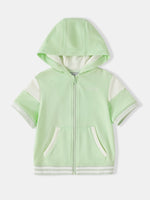 Kid Short Sleeve Logo Embroidery Zipped Hoodie