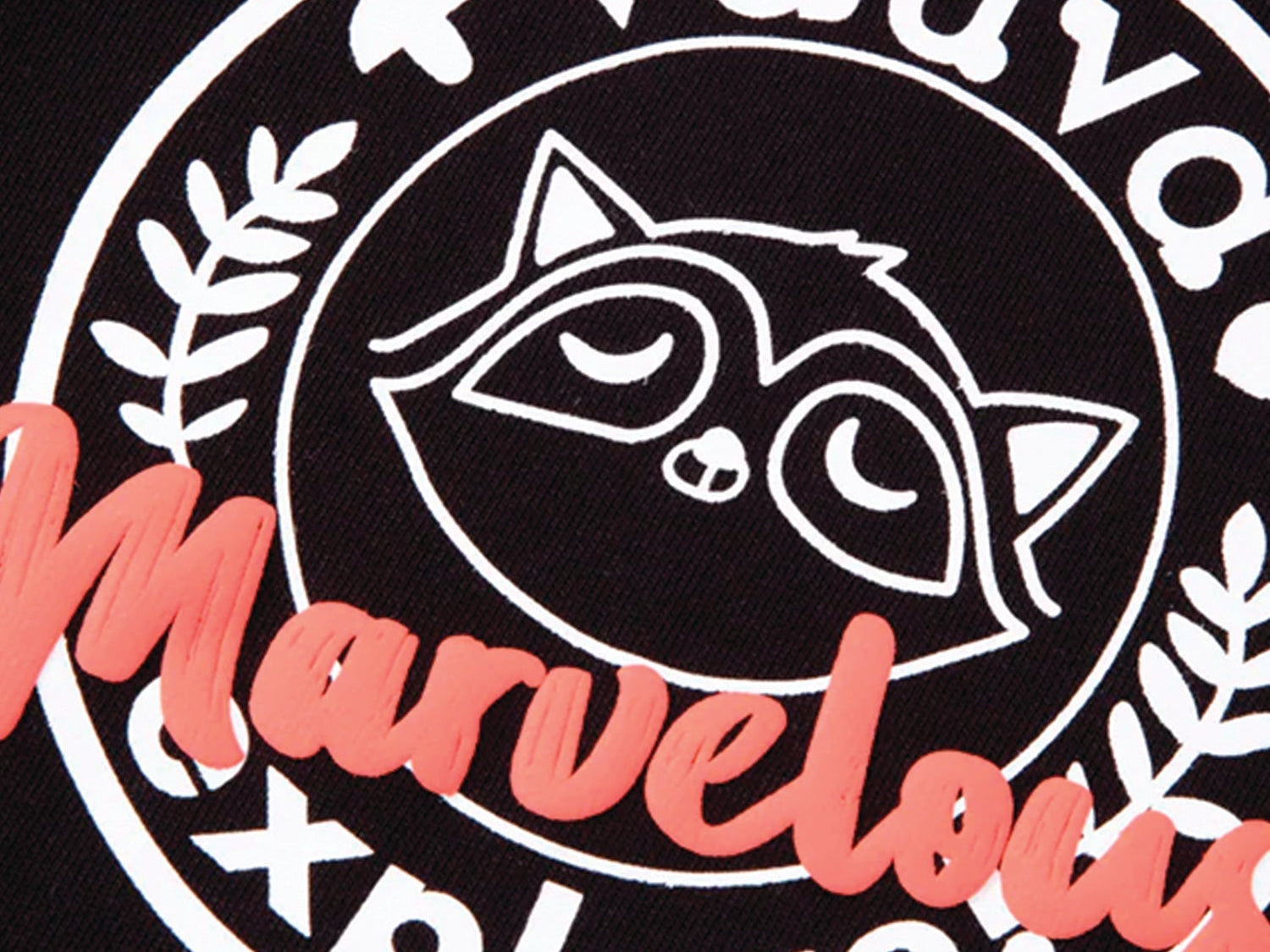 Black Colour with White and Sharpe Orange Raccoon Print