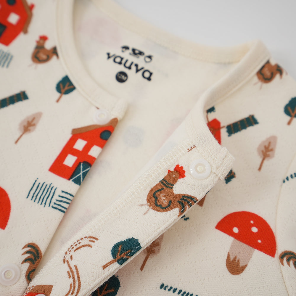 Vauva FW23 - Baby Girl Nordic Print Cotton Long Sleeve Romper (White)