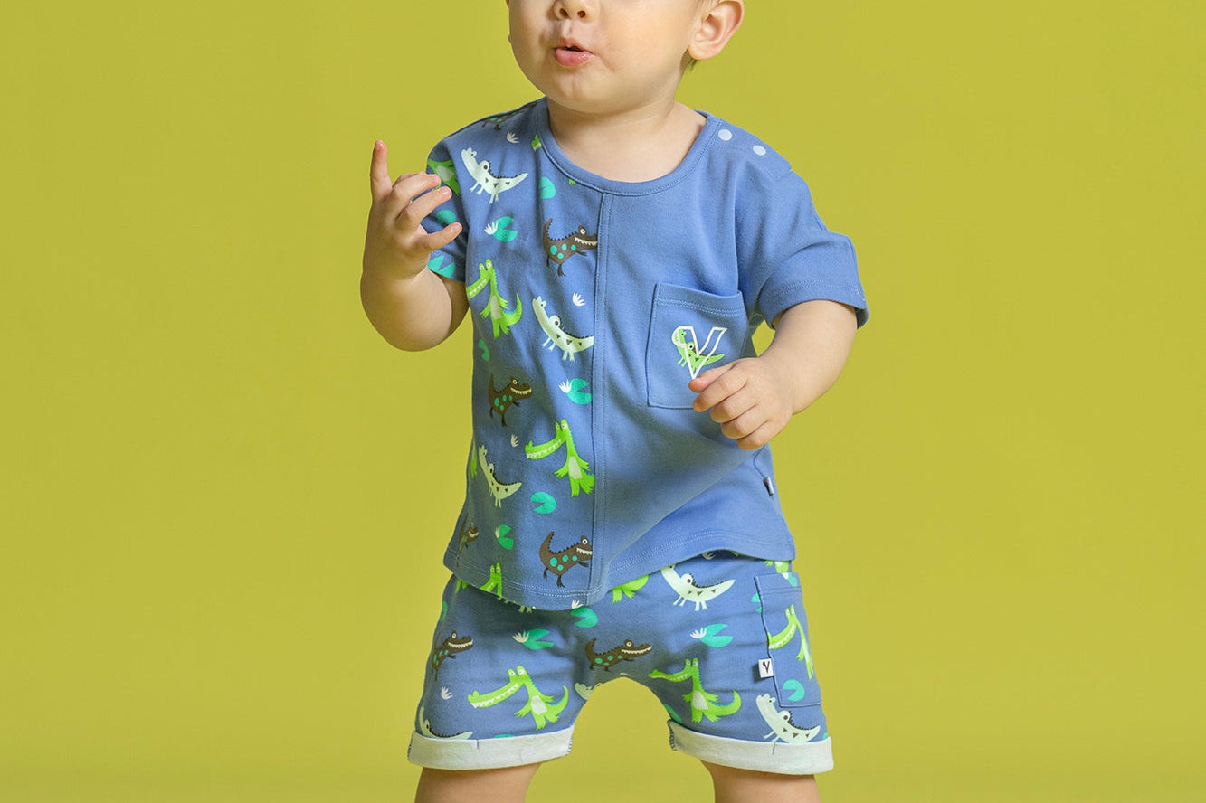 Vauva SS23 Safari - Baby Boys Crocodile Print Patchwork Cotton Short Sleeve T-shirt
