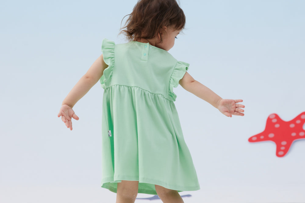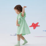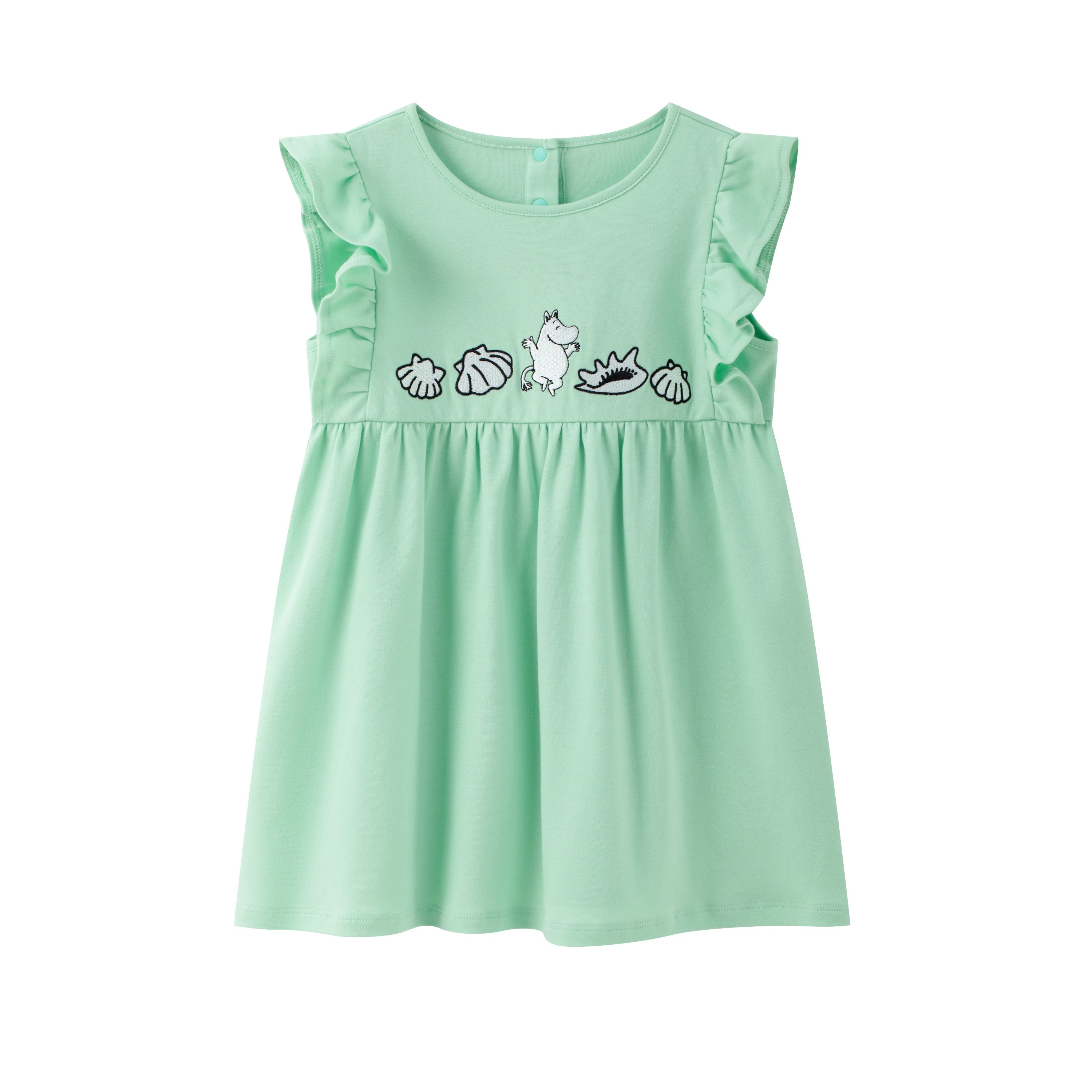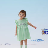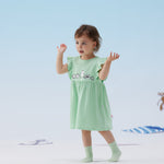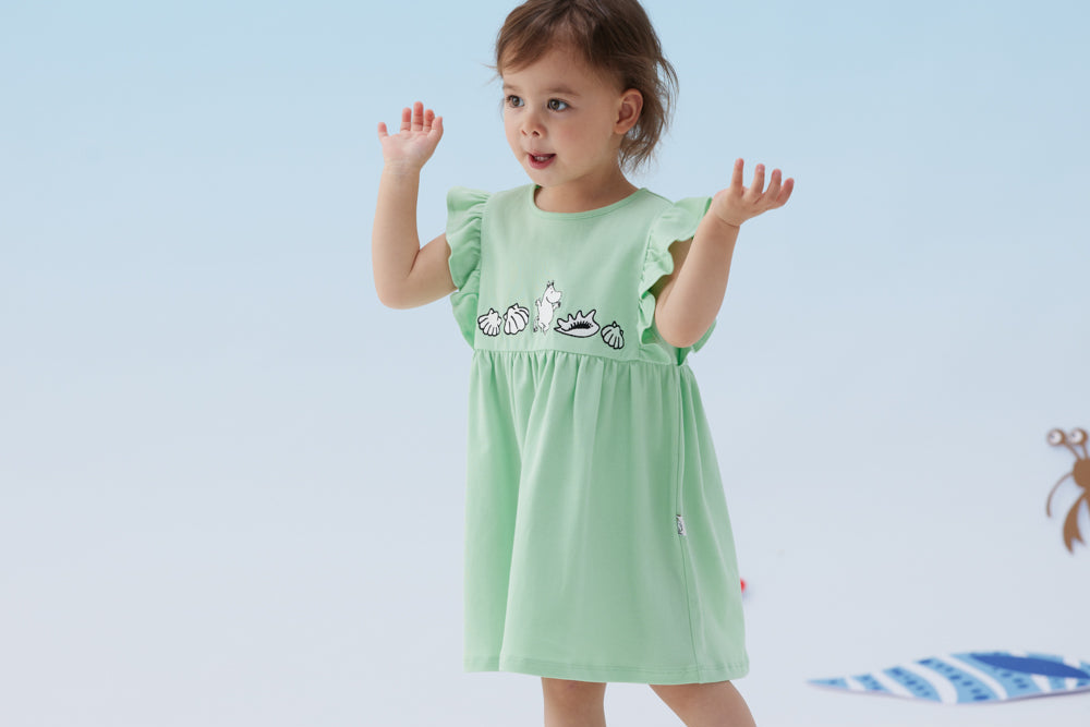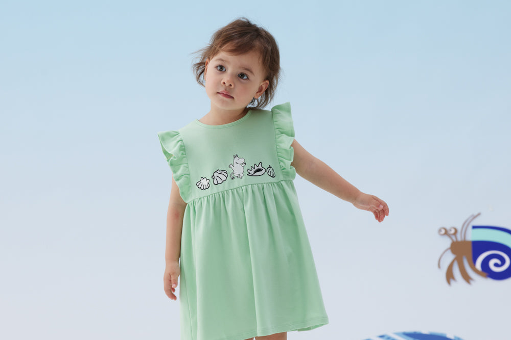 Vauva x Moomin - Baby Girl Moomin Embroidered Short Sleeve Dress - Pastel Green