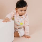 Keep your little one cozy and stylish with our Baby Polo Neck Print Cardigan. Made from 100% organic cotton, the breathable fabric ensures all-day comfort for delicate skin. Featuring an adorable all-over bunny print, this button-down cardigan is perfect for layering over any outfit, adding both warmth and charm to your baby’s wardrobe.