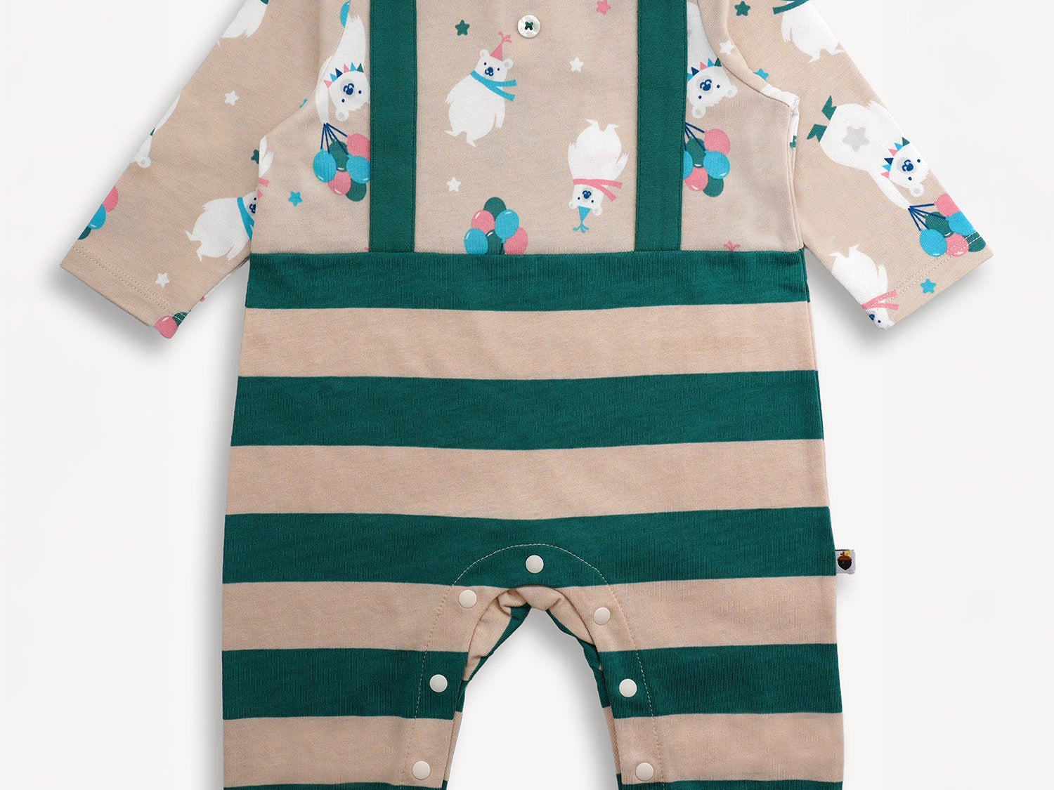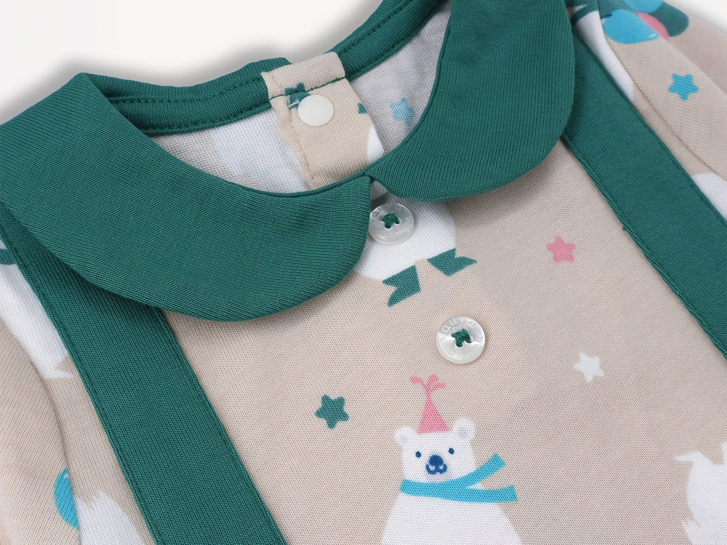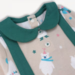 The Bear Two-Tone Baby Romper is designed to keep your little one comfy and camera-ready all day long. Made from 100% organic cotton, this romper is lightweight, breathable, and perfect for delicate skin. The charming two-tone design is complemented by a classic doll collar and an adorable bear print that adds playful personality. Thoughtful details like elastic hems and snap buttons at the bottom and back make dressing and diaper changes quick and fuss-free. Whether it’s playtime or picture time, this romper is a beary cute choice.