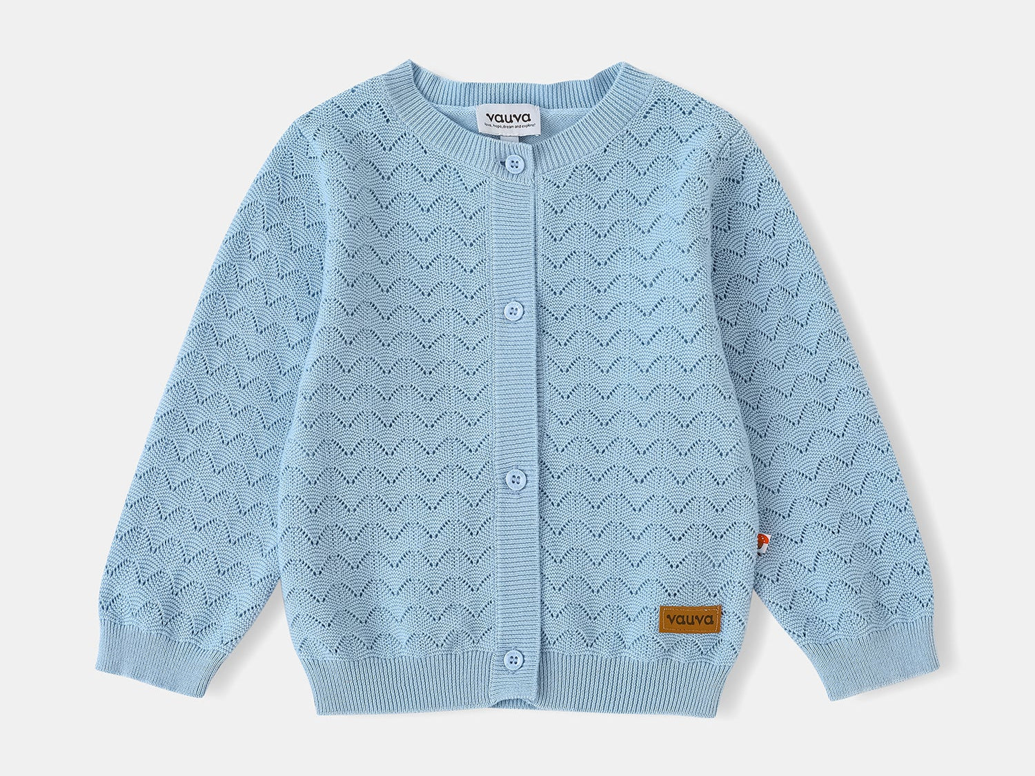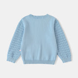 Delicate, cozy, and effortlessly stylish, the Kid Logo Patch Pointelle Cardigan is a charming layering piece for any occasion. Made with a beautifully detailed pointelle knit, this cardigan brings a touch of elegance to your child's everyday outfits. The classic button-up design makes it easy to wear, while the signature logo patch adds a subtle, stylish finish. Perfect for school days, family outings, or breezy evenings, this cardigan is a timeless addition to any wardrobe.
