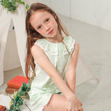 Kid Lace-Trimmed Collar Sleeveless Tie Bottom Top