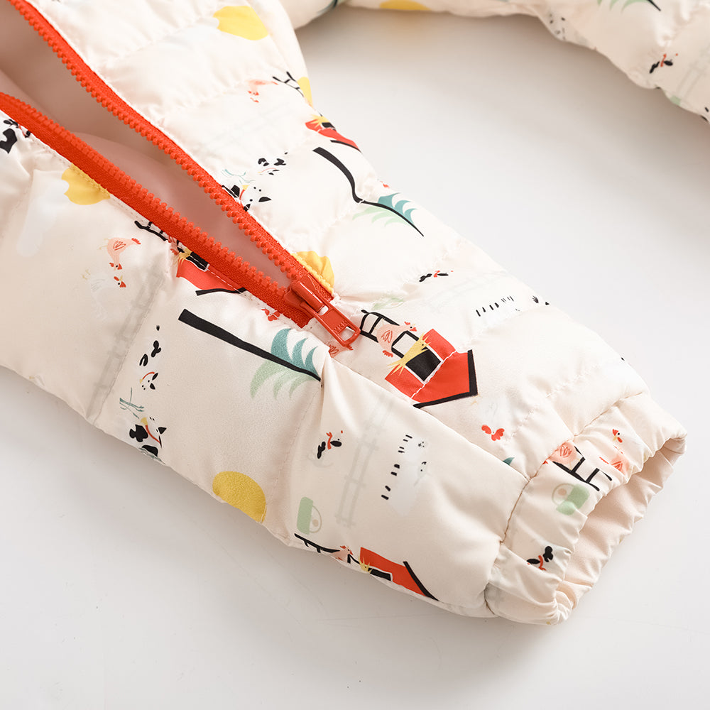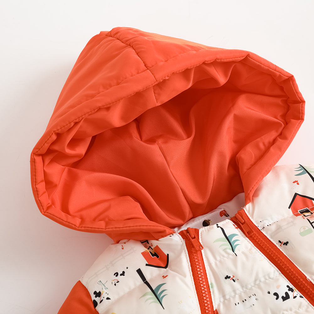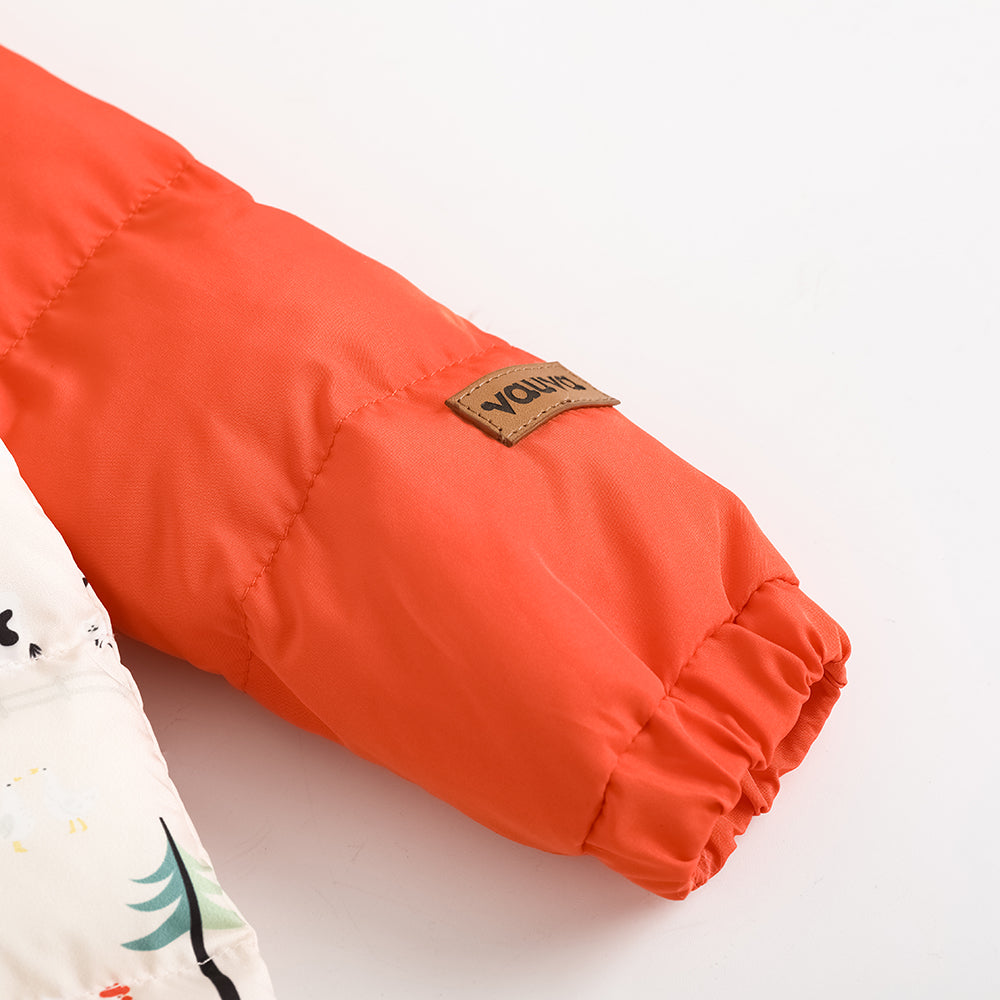 Vauva FW23-嬰兒男女通用北歐風格,全印刷棉帽長袖連身褲(紅色)