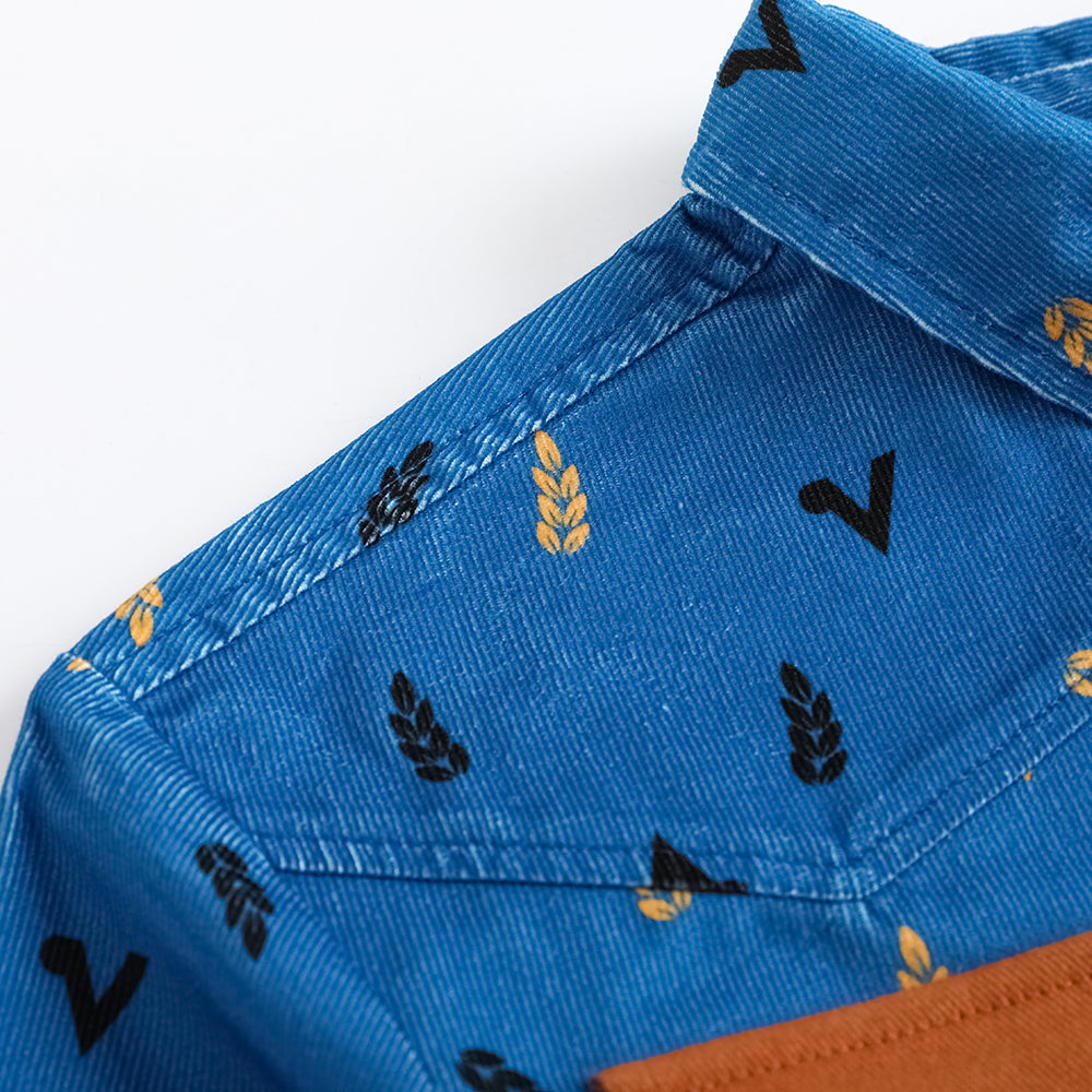 Vauva FW23-男孩雙口袋燈芯絨長袖襯衫(藍色)