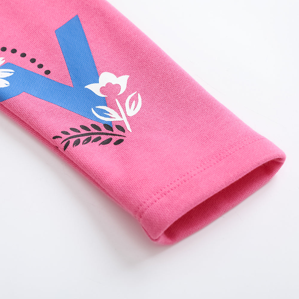 Vauva FW23-女孩印刷有機棉褲(玫瑰粉紅色)