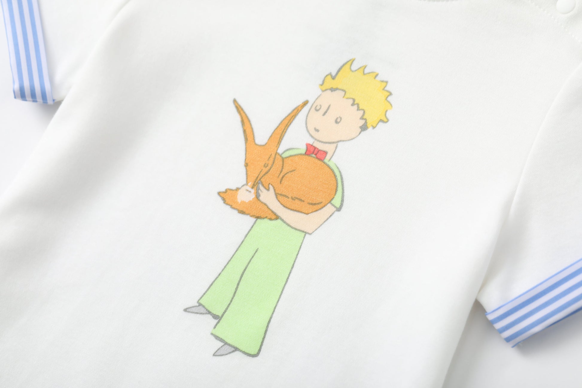 Vauva x Le Petit Prince - Baby Boy Yarn Dyed Stripe Little Prince Print T-shirt Top - White specially designed for babies have good air permeability and a soft touch.